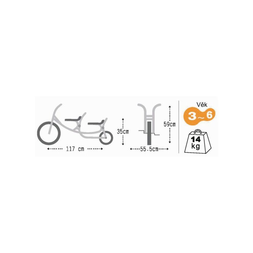 rozměry (délka 117cm, šířka 55cm, výška řidítek 59cm,výška sedla 35cm)