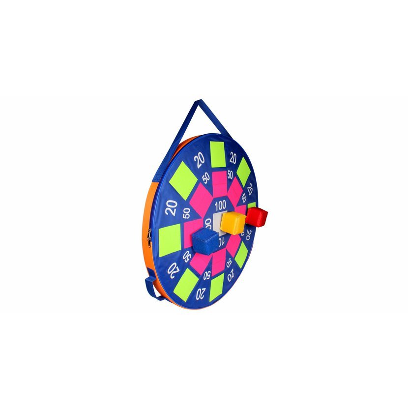 Výhodou terče na suchý zip je menší hluk oproti elektronickým a klasickým terčům. Tento terč je dodávaný včetně tří kostek na házení.