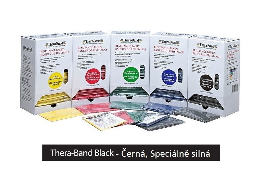 Posilovací guma TheraBand černá patří mezi náročnější úrovně odporu a je určena především pro pokročilé uživatele, kteří hledají intenzivní trénink.