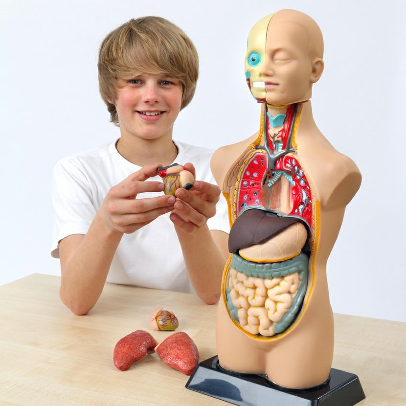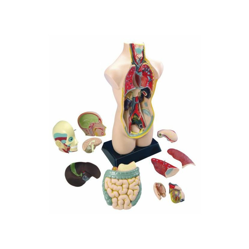 Lebku lze rozdělit na 2 poloviny. Jednotlivé orgány anatomického modelu jsou snímatelné. To znamená, že lze prohlížet i skryté orgány. Torzo je ideálním demonstračním materiálem pro hodiny biologie. Dotykem, instalací a vyjmutím orgánů se vaši studenti srozumitelným způsobem seznámí se stavbou lidského těla.