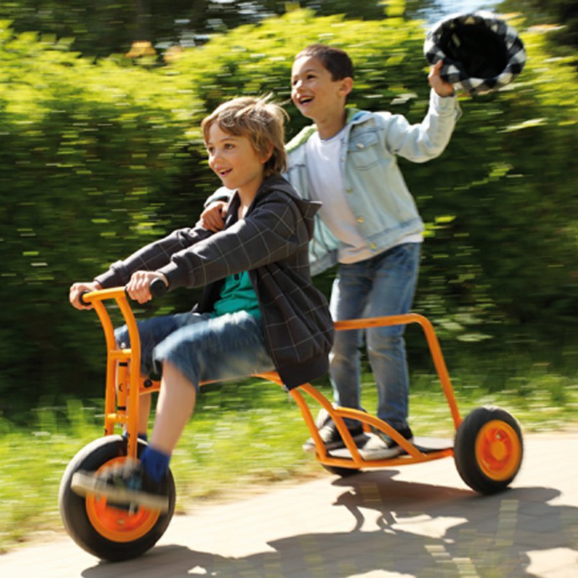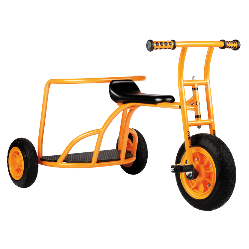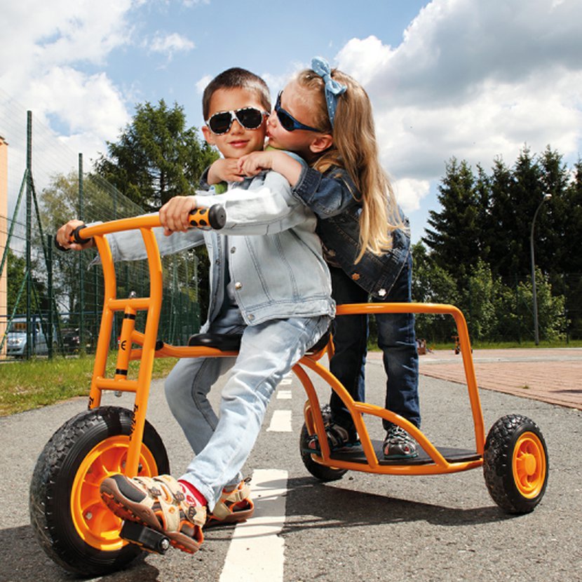 Tříkolka Express nabízí zábavu z jízdy až pro dvě děti. Díky protiskluzové desce a zábradlí se může bezpečně vozit ve stoje ještě jedno dítě. Tříkolka Express nabízí různé příležitosti pro hraní rolí.