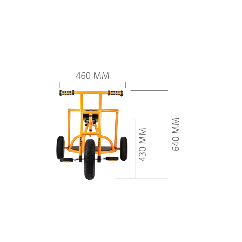 Kola tříkolky jsou navržena s ohledem na maximální bezpečnost a zabraňují možnému vsunutí děského chodila. Řídítka jsou opatřena rukojeťmi z příjemného materiálu. Výška sedla je přizpůsobena dětské výšce a délce nohou.