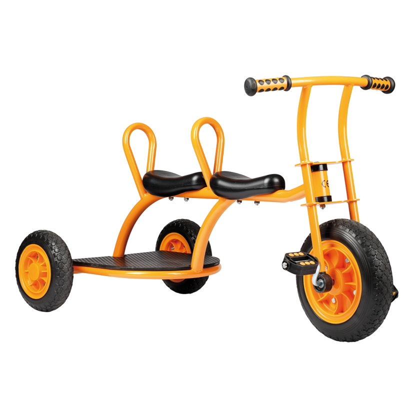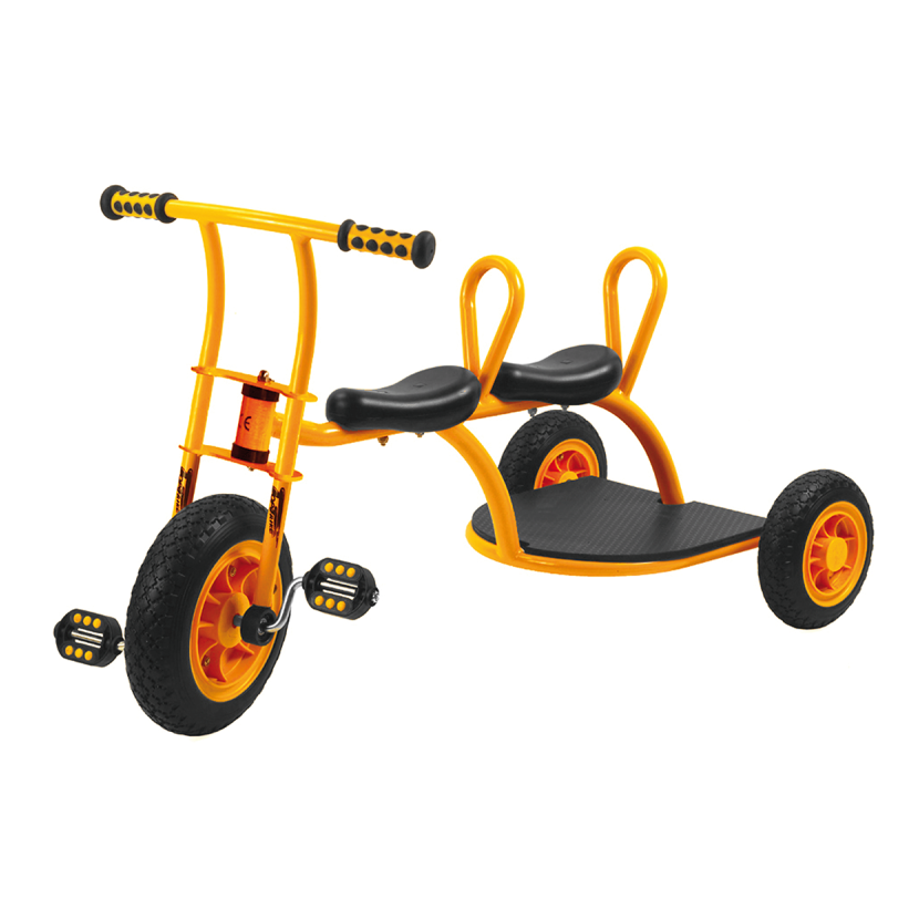 Na tříkolce Duotaxi se mohou svézt až tři děti. Jeden řidič může vozit až dva kamarády, kteří si užívají jízdu na lavičce za řidičem. Děti se učí koordinovat šlapání s řízením. Rozvíjí koordinaci…