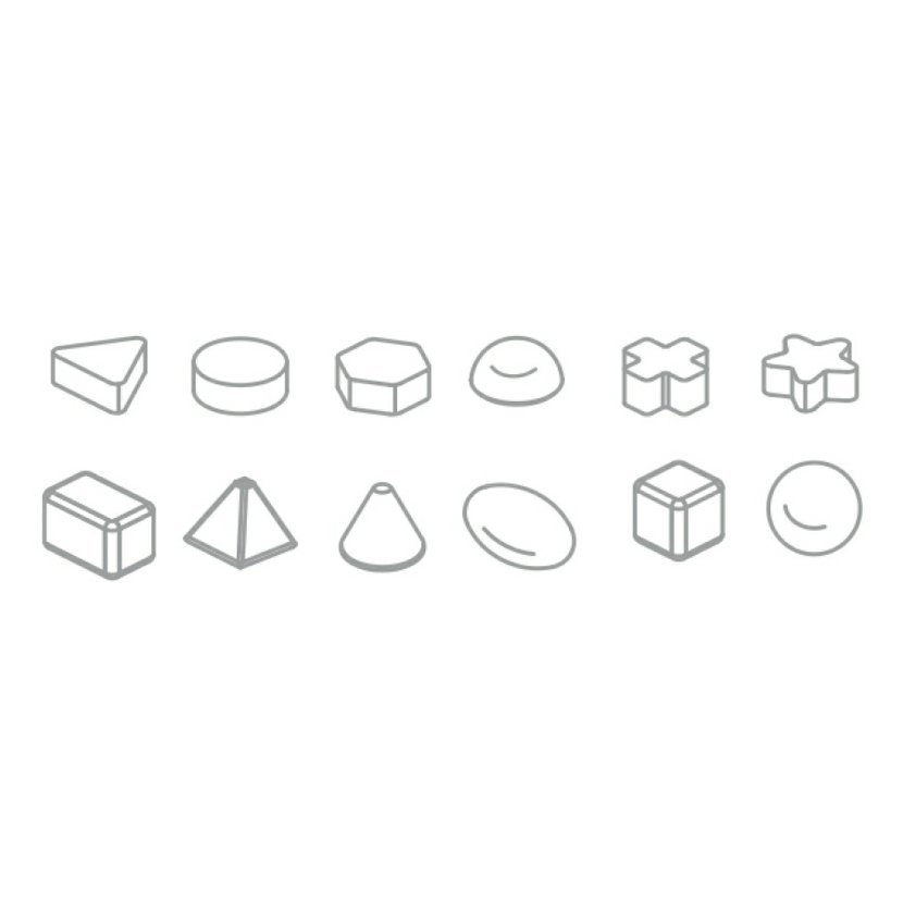 obsah: 1 x box (20 x 20 x 5 cm), 1 x tabulka (16,5 x 16,5 x 1,2 cm), 12 geometrických tvarů,