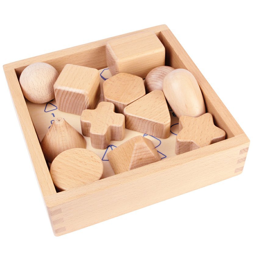 Najdi jen po hmatu ke všem 12-ti blokům ten správný geometrický tvar a očísluj ho. Dle kontrolní tabulky lze tvary zkontrolovat. Též lze hádat ve dvou. Jeden hráč tvar popisuje, druhý hádá, o jaký tvar se jedná.