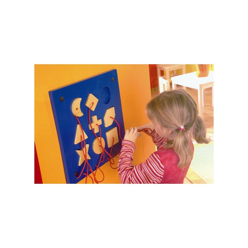 Úkolem je správné přiřazení příslušného geometrického tvaru negativnímu výřezu v základní hrací desce. Dřevěné prvky mají různé tvary - malý a velký čtverec, trojúhelník, kruh, elipsa, hvězda, měsíc, šestiúhelník a kříž.