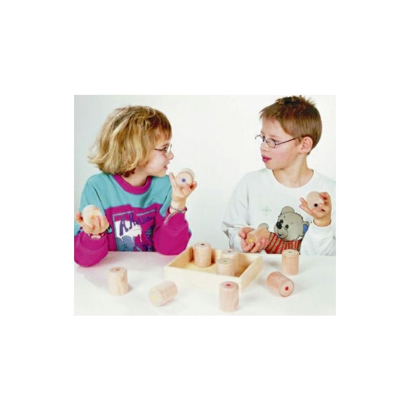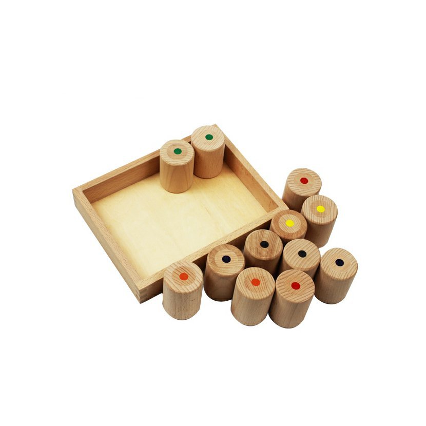 Tato pomůcka vysoké vzdělávací hodnoty pomáhá k rozvoji vnímání hmotnosti. Děti se snaží najít 2 boxy o stejné hmotnosti. Dle barevného označení na spodní straně boxu je možné ihned zkontrolovat správnost výběru.