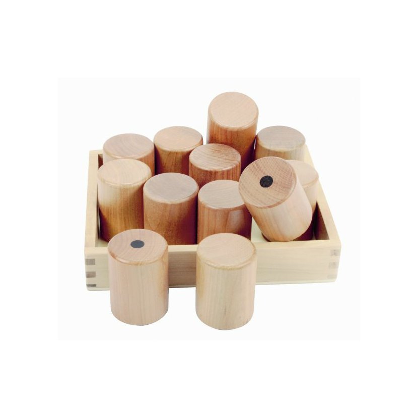 Tato pomůcka vysoké vzdělávací hodnoty pomáhá k rozvoji vnímání hmotnosti. Děti se snaží najít 2 boxy o stejné hmotnosti. Dle