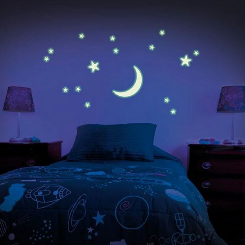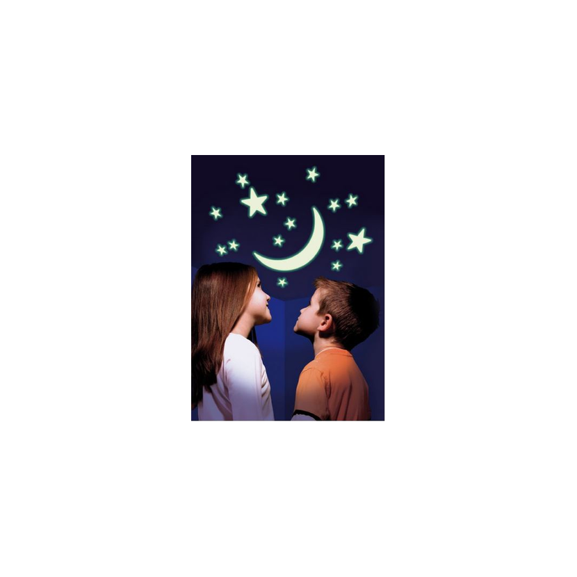 Kvalitní plastikové hvězdy a měsíc s Glow efeketem. Za deního světla se světelně "nabijí" a v průběhu noci pak světélkují. Efekt světélkování lze zvýšit rozsvícením pokojového světla nebo pomocí UV lampy.