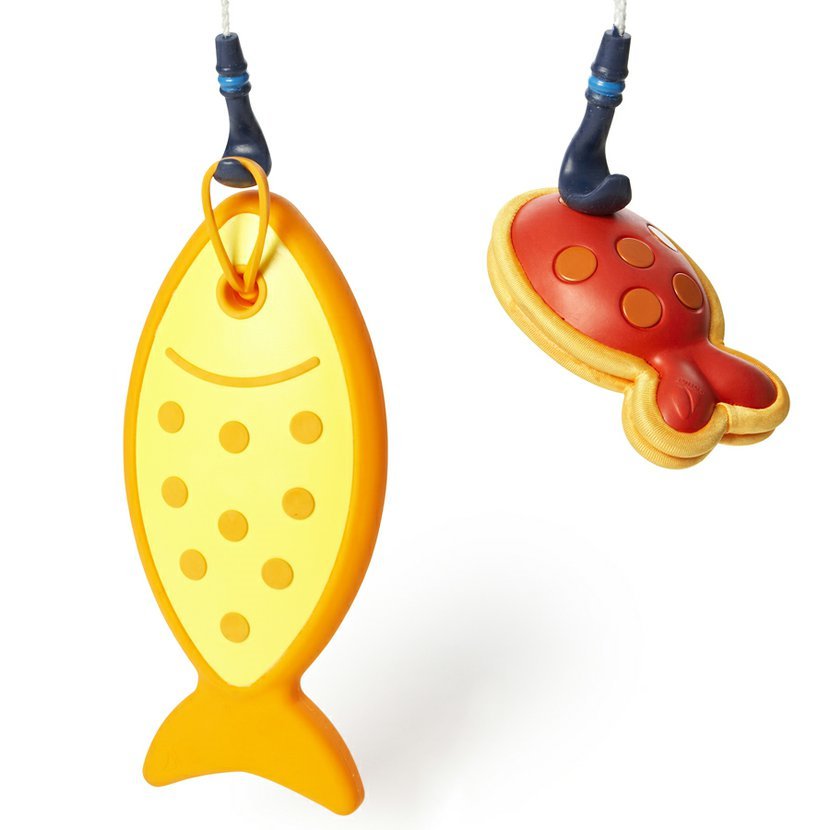 obsah: 2 x ryba (D : 38 cm, Š : 22 cm, V : 4.5 cm), 2 x ryba (D: 34 cm, Š: 15 cm, V : 4.5 cm), 4 x odnímatelná oka pro chytání ryb, 1 x rybářský prut (délka 90 cm),