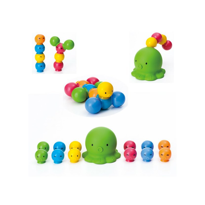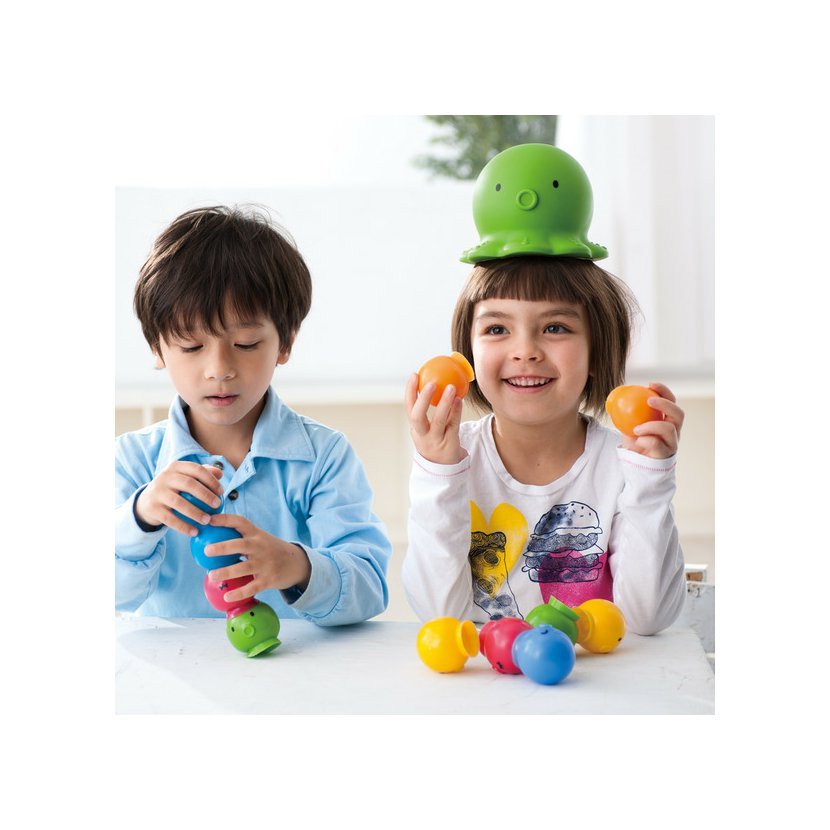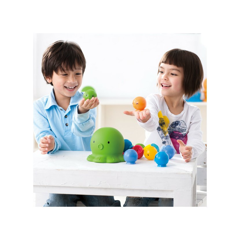 obsah: 1 x veliká veselá chobotnička velikosti 15.5 x 15.5 x 12 cm (zelená barva), 12 x chobotnička o rozměrech 5 x 5 x 5.6 cm (2 x od každé barvy: modrá, zelená, oranžová, červená, žlutá, fialová),