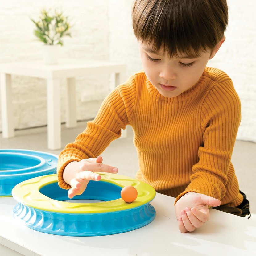 obsah: 2 S dráhy tvořící ležatou osmičku, 2 míčky z různého materiálu umožňující různé rychlosti a stupně obtížnosti, výchovně vzdělávací cíl: rozvoj zručnosti a zlepšení reflexů,věk: 4+