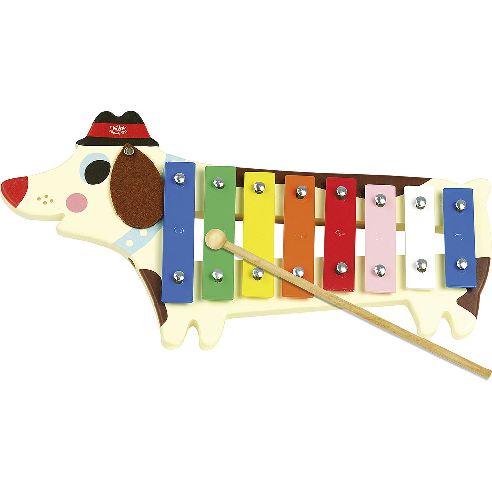 Vícebarevný xylofon ve tvaru pejska, díky kterému se menší děti naučí poznávat barvy a starší skládat melodie. V balení s jednou paličkou a notami. Ilustrováno Ingelou P. Arrhenius. Hlavní vlastnosti: prohlubuje lásku k hudbě a rytmikukovové klapkydesign Ingela P. Arrhenius Švédská umělkyně Ingela Peterson Arrhenius se narodila v roce 1967. Umění a design měly vždy místo v jejím životě a než začala její kariéra ilustrátorky, Ingela pracovala jako umělecká vedoucí ve Stockholmu. Poté studovala reklamní a grafický design na umělecké škole také ve Stockholmu. V roce 1992 začala podnikat jako ilustrátorka na volné noze a pracovala mezinárodně napříč reklamou, designem, nakladatelstvím… V minulosti vytvářela tiskové vzory pro tkaniny, tapety, papírnictví, také pracovala na obalech, produktovém designu, bytových doplňcích a hračkách. Její plakáty a designové hračky najdete po celém světě. Má vášeň pro retro styl, což je jasně vidět na jejich dílech a také v jejím nadšení pro typografii a barvy. Nyní žije ve Stockholmu s manželem a dvěma syny.