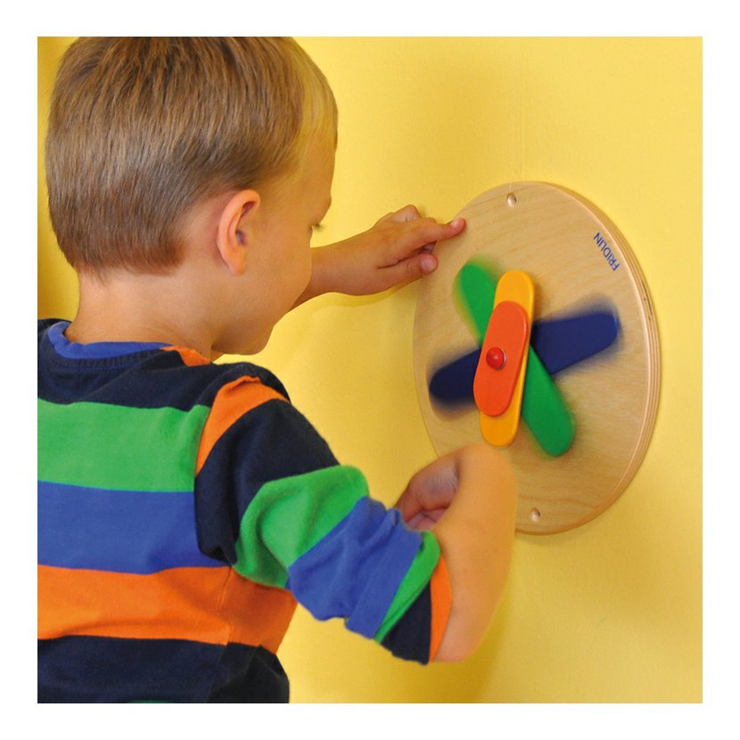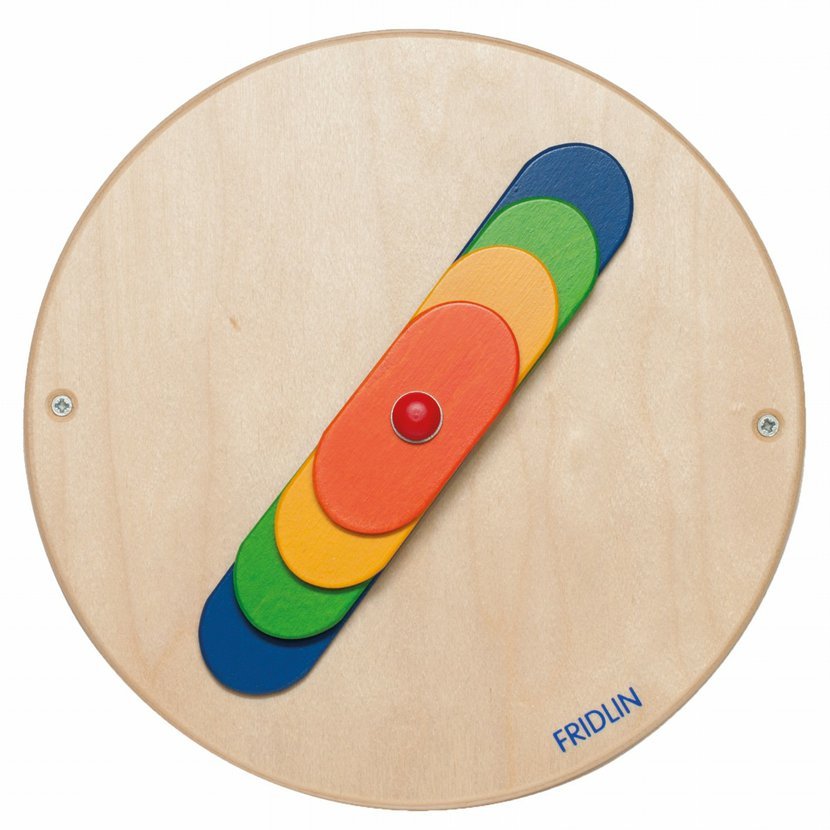 věk: 0+, Hra na stěnu s poznáváním mechanických souvislostí a trénováním jemné motoriky.