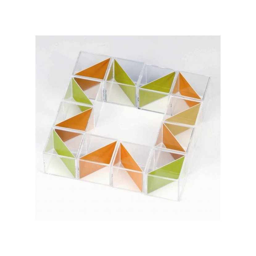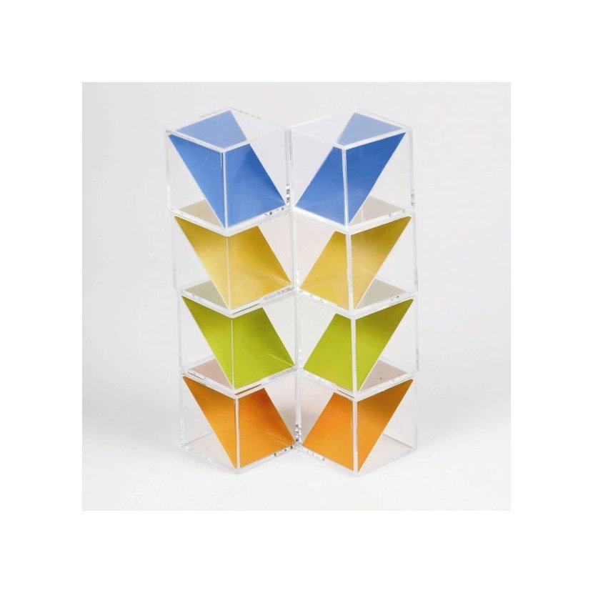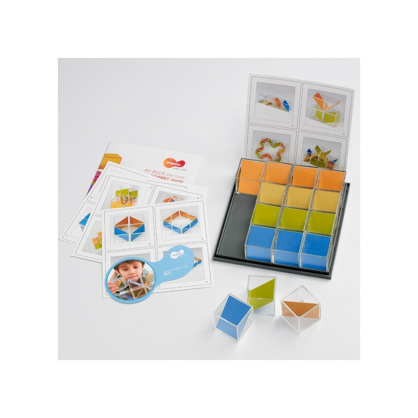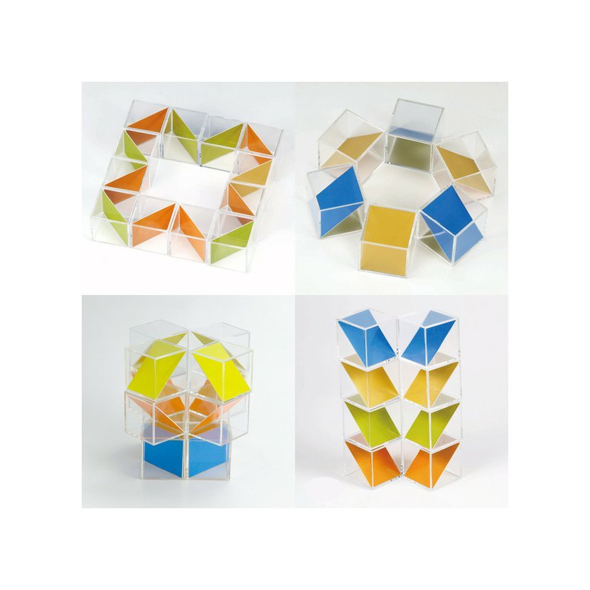 obsah: celkem 16 boxů (5 x 5 x 5 cm), 8 x zelená/modrá, 8 x žlutá/oranžová, 6 vzorových karet,