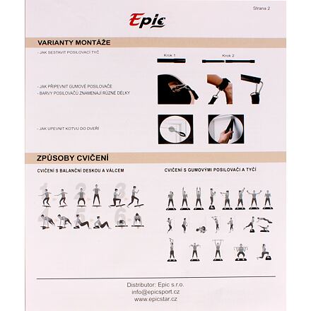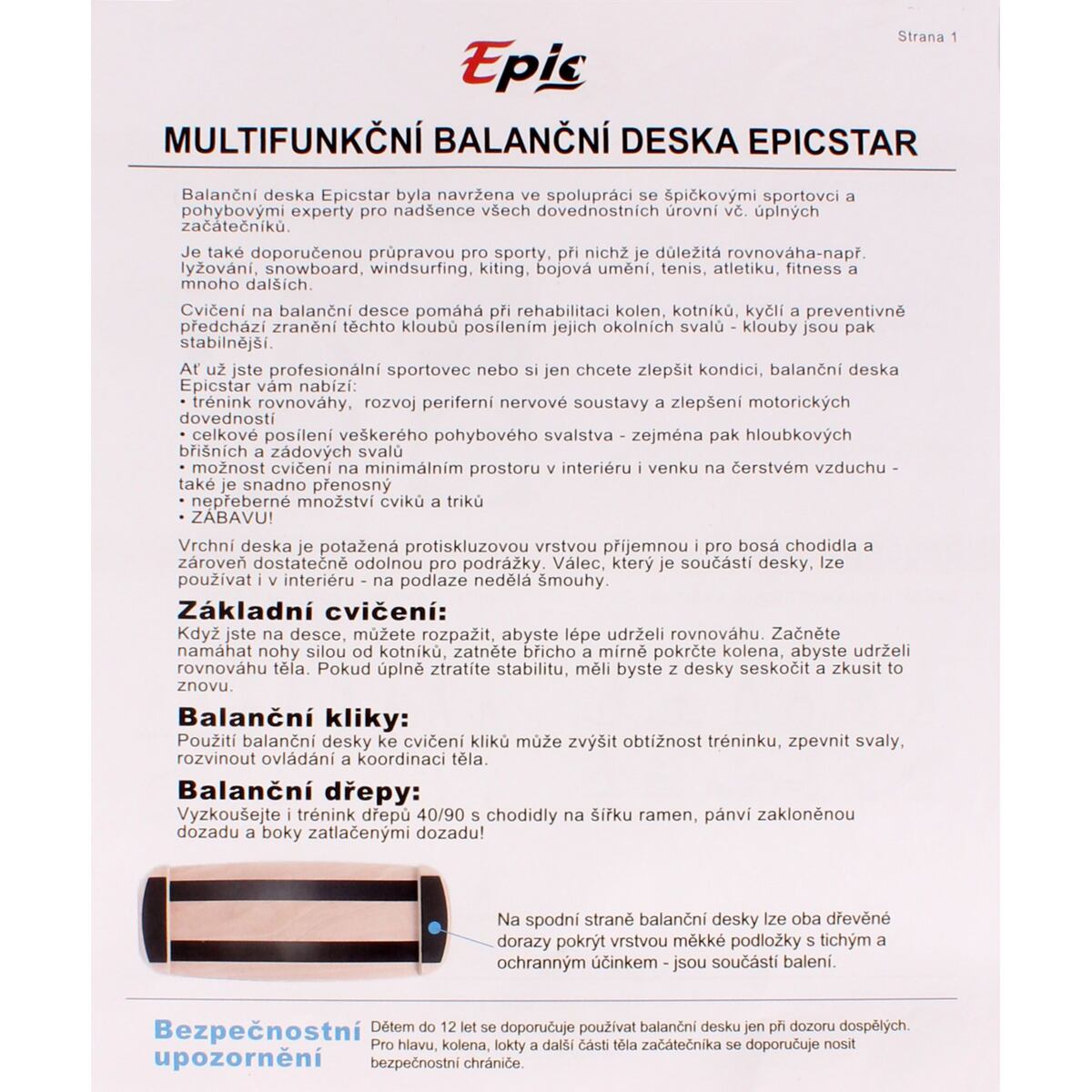 Multifunkční balanční deska Epicstar je výsledkem spolupráce s elitními sportovci a odborníky na pohyb. Ideální pro všechny, od úplných začátečníků až po zkušené sportovce. Je to výborná pomůcka pro sporty, kde je klíčová rovnováha - např. lyžování, snowboard, windsurfing, kiting, bojová umění, tenis, atletika, fitness a mnoho dalších. Cvičení na balanční desce Epicstar pomáhá při rehabilitaci kolen, kotníků, kyčlí a preventivně předchází zranění těchto kloubů posílením jejich okolních svalů - klouby jsou pak stabilnější. Vrchní deska balanční desky Epicstar je potažená protiskluzovou vrstvou příjemnou pro bosá chodidla a zároveň dostatečně odolnou pro podrážky. Válec balanční desky Epicstar lze používat i v interiéru, bez nutnosti použití koberce. Pro vyšší bezpečnost je deska zespoda vybavena koncovými zarážkami, na které můžete nalepit samolepicí měkké podložky pro zvýšenou ochranu podlahy. Součástí balení je posilovací tyč s gumovými expandery, kotva do dveří a poutko na kotník. Jde o moderní posilovací pomůcku umožňující systematické posilování všech svalových partií. Posilovací expandéry jsou skvělou univerzální pomůckou k posílení a protažení svalů a ke zvýšení výkonu při tahových cvičení. Gumu lze využívat jak k silovému tréninku s vlastní vahou, tak i k vytrvalostnímu tréninku. Tento set nabízí tři páry expandérů s různými stupni odporu. Dveřní kotva rozšiřuje použití odporových gum. Cvičit tak můžete skoro stejně jako na závěsném systému. Váleček kotvy protáhnete do dveří tak, aby se dveře tahem zavíraly, popř. ho můžete umístit k dveřnímu pantu. Do poutka válce upnete daný expander za pomocí karabiny, která je součástí balení. Díky tomu můžete posilovat každou stranu těla zvlášť a lépe se tak soustředíte na správné provedení cviků. - součástí balení je vak pro snadné přenášení a uskladnění - maximální nosnost: 150 kg - rozměr desky: 73,5 x 26,5/28,5 x 2 cm (délka x šířka na kraji/šířka uprostřed x tloušťka) - rozměr válce: 10,5 cm x 41,5 cm (průměr x délka) - hmotnost desky: 2,35 kg - hmotnost válce: 1,2 kg - válec opatřený měkkým filcem - nepotřebuje podložku na tvrdém povrchu - na spodní straně balanční desky lze oba dřevěné dorazy pokrýt vrstvou měkké podložky s tichým a ochranným účinkem - jsou součástí balení - gumové expandery jsou barevně rozlišeny podle velikosti odporu - dveřní kotva je malá, lehká pomůcka pro uchycení cvičebních expanderu - poutko pro uchycení na dolní nebo horní končetinu - doporučený věk: 9+