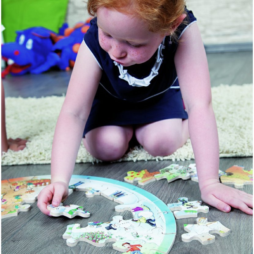 Toto nové naučné puzzle "4 roční období“ dává dětem možnost seznámit se herní formou s ročními obdobími a s průběhem roku. Nabádá je ke zkoumání jednotlivých měsíců, jejich sezónní charakteristiky a k zařazení vědomostí, které prostřednictvím hry získají, do jejich každodenního života.