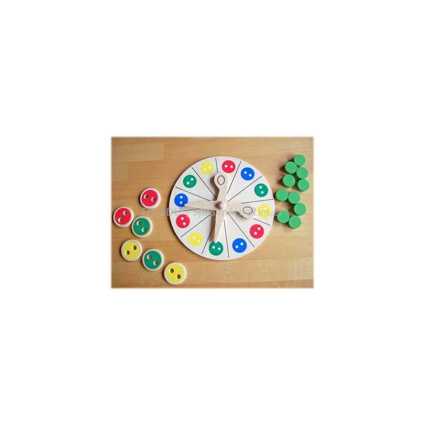 obsah: 1 dřevěná košile (210 x 200 mm), 16 dřevěných knoflíků (ø 30 mm), 1 dřevěná jehla s nití, 1 nůžky na točení, 10 výherních žetonů v prodejním boxu 225 x 225 x 50 mm