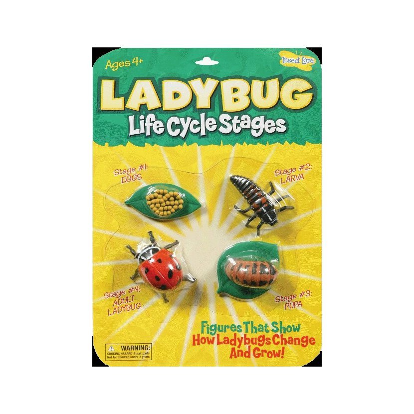 Model se čtyřmi vývojovými stádii berušky... vajíčka - larva - kukla - beruška.