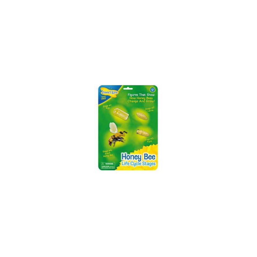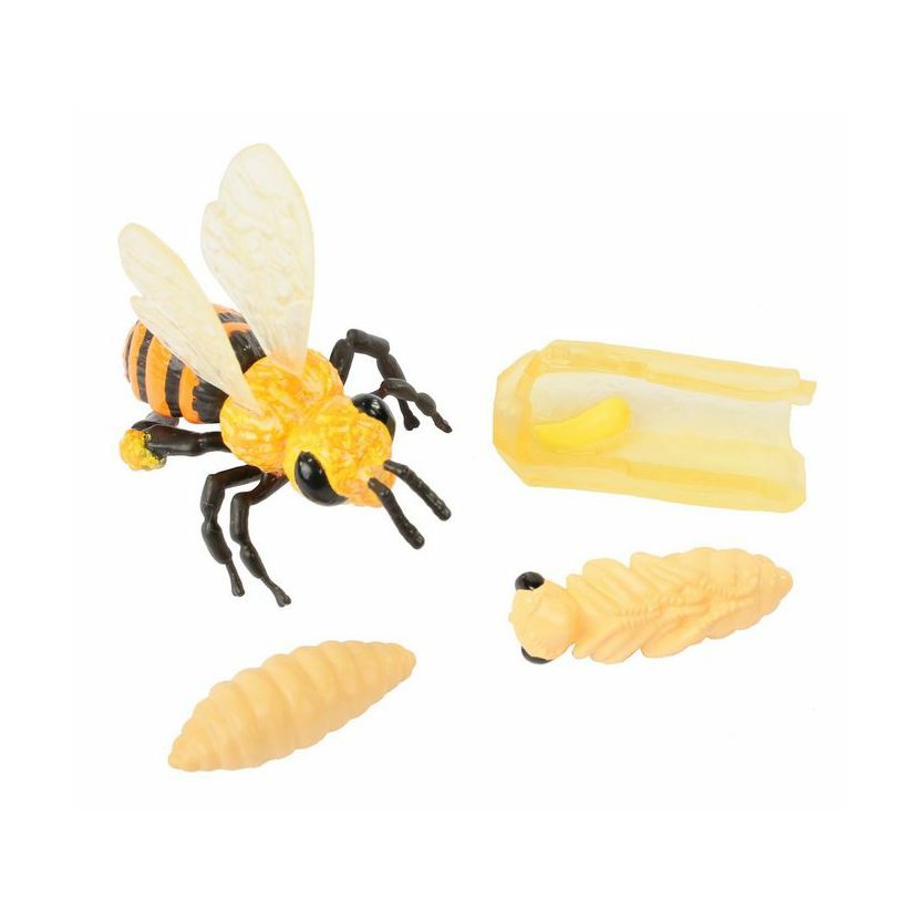 Model se čtyřmi vývojovými stádii včely... vajíčka - larva - kukla - včela