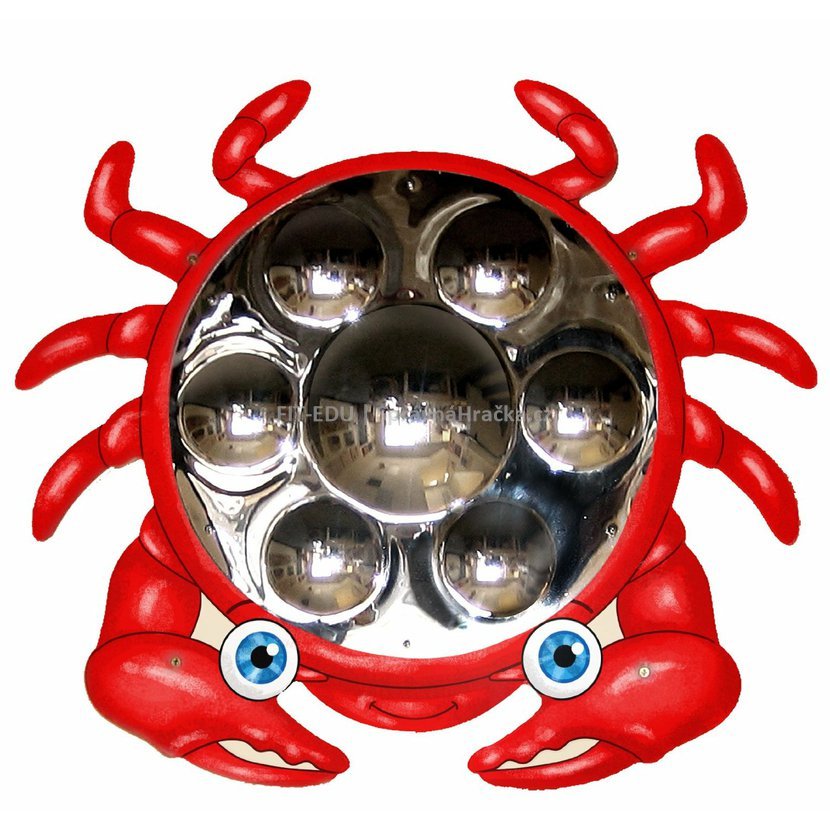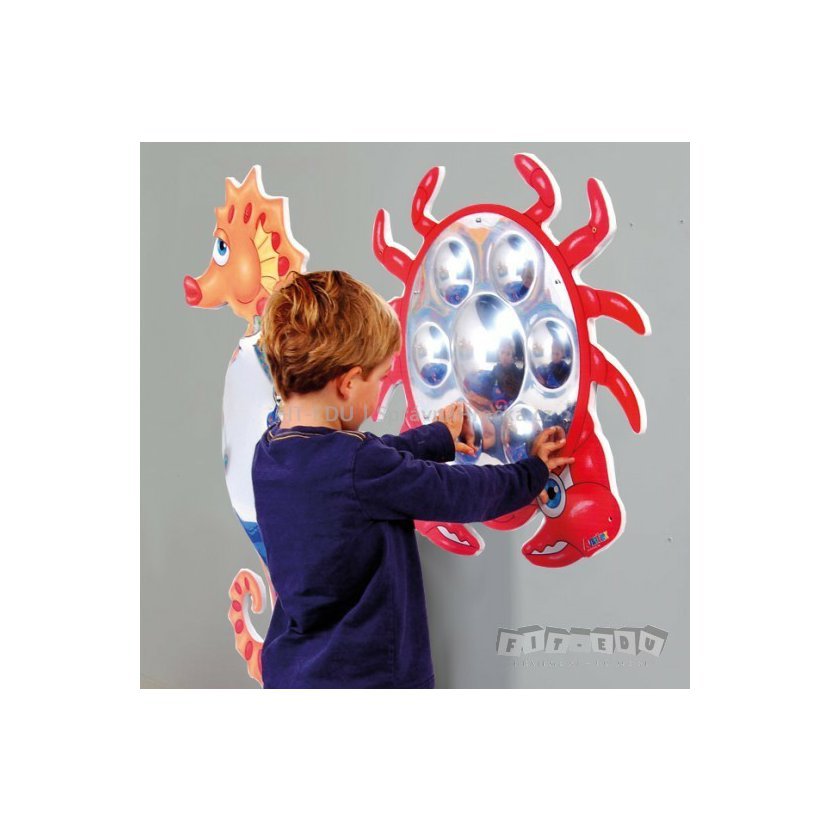 Tak se vidí děti v tomto zrcadle kraba se sedmi konvexními tvary. Protože tomu samy nedokáží věřit, hned se dají do prozkoumávání kulovitých vypouklin rukama.