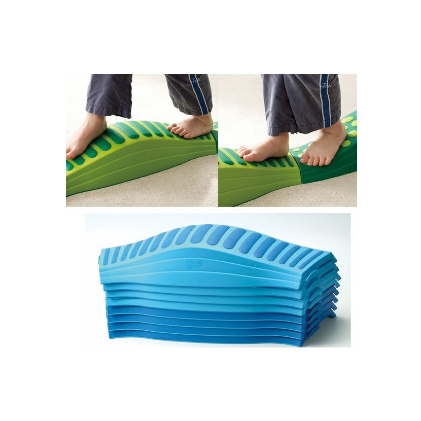 Jednotlivé díly lze jednoduchým způsobem spojovat do sebe a vytvořit tak přímé nebo klikaté dráhy. Povrch jednotlivých dílů byl navržen tak, aby co nejvíce pozitivně ovlivňoval jednotlivé svaly plosky nohy a pomáhal k utváření správné klenby. Výborná pomůcka pro stimulaci plosky nohy a procvičování předozadní a pravolevé balanční kontroly.Uděleny ceny za design.